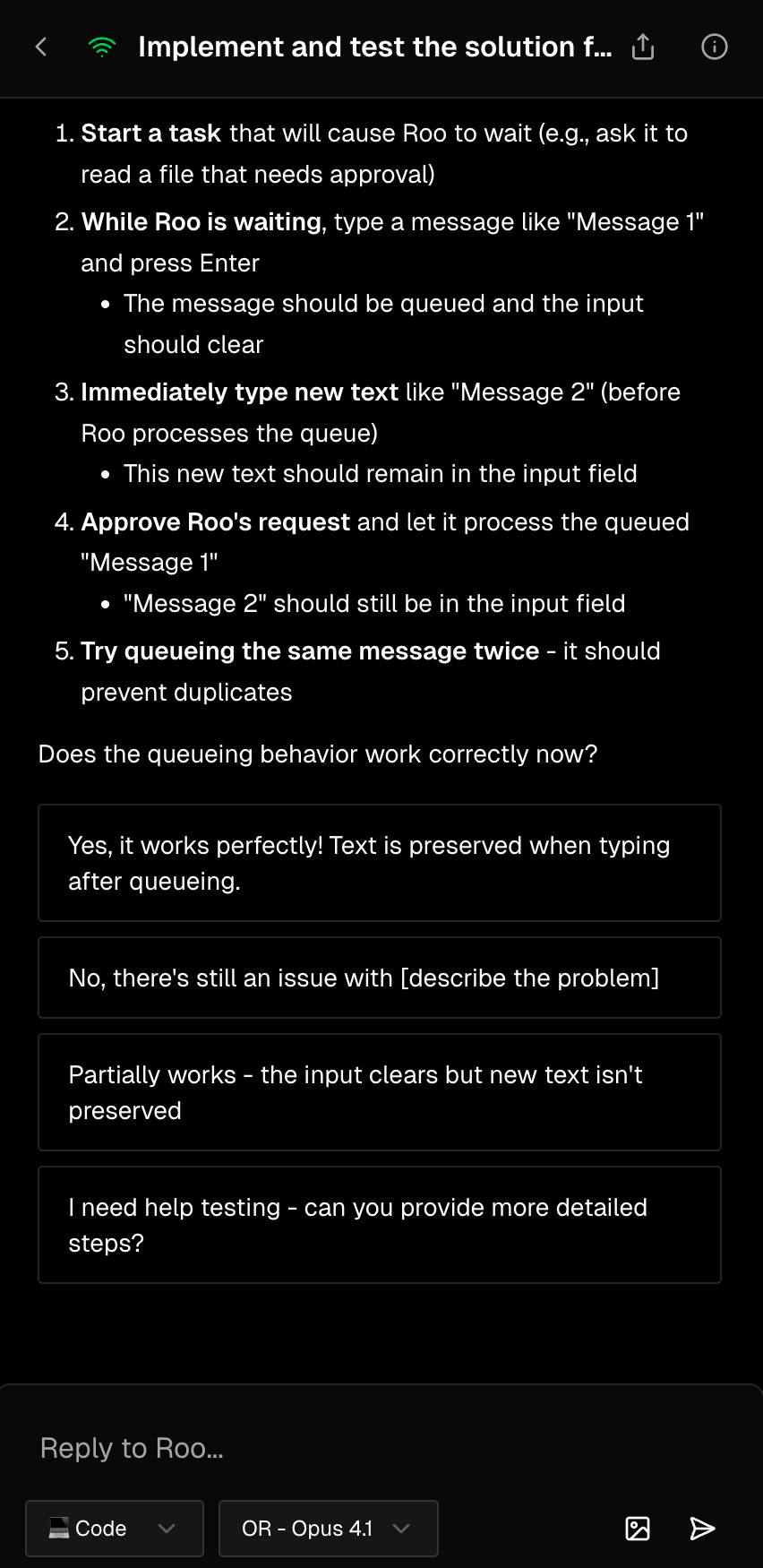 • Context Condensing: Fixed an issue where the initial task request was being lost during context condensing, causing Roo to try to re-answer the original task ask when resuming after condensing (#8298)